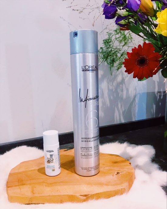 - Infinium haarlak met sterkte 6 van Loreal Proffesionel.